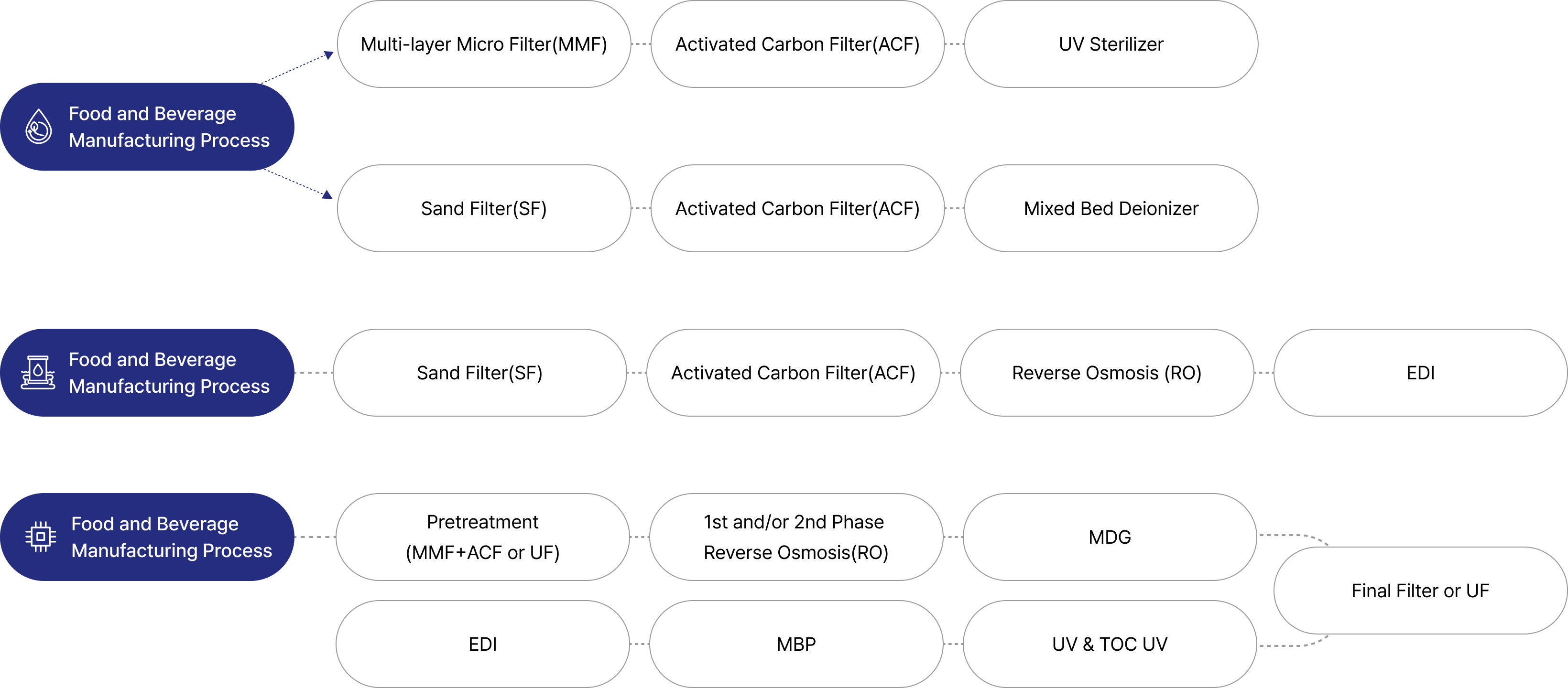 By integrating various water treatment technologies such as depth filtration, surface filtration, UV disinfection, ion exchange, and membrane separation (RO), impurities in the raw water are effectively removed and stable water quality is ensured.