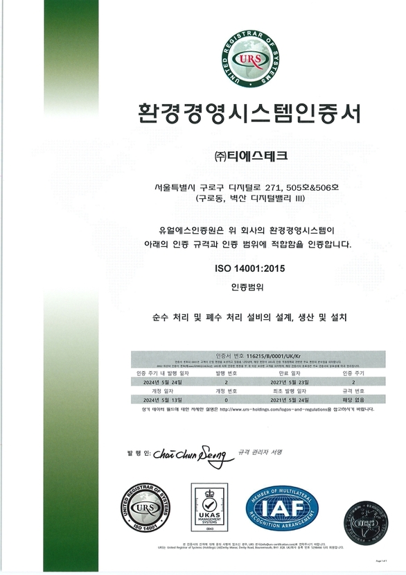 저희 TS TECH는 최고의 수처리 및 폐수처리 시스템을 지향합니다.